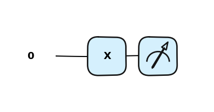 Bramka X obraca kubit w kierunku osi na sferze Bloch’a o \(\pi\) radianów. Zmienia \(|0\rangle\) na \(|1\rangle\) oraz \(|1\rangle\) na \(|0\rangle\). Jest często nazywana kwantowym odpowiednikiem bramki NOT lub określana jako bit-flip.