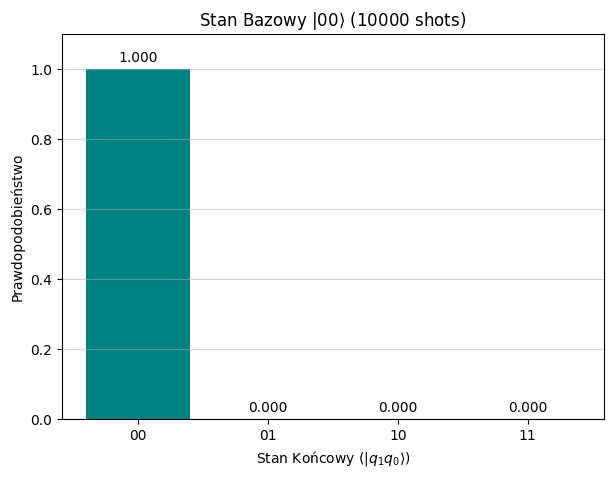 # Wywołanie dla Stanu Zerowegoprint("Symulacja Stanu Zerowego...")counts_zero = circ_zero()plot_counts_histogram(counts_zero, "Stan Bazowy $|00\\rangle$")