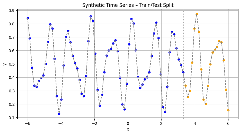plt.title("Synthetic Time Series – Train/Test Split")