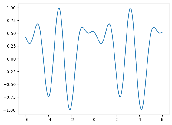 results = [parralel_quantum_model(weights, x_) for x_ in X]plt.plot(X,results)