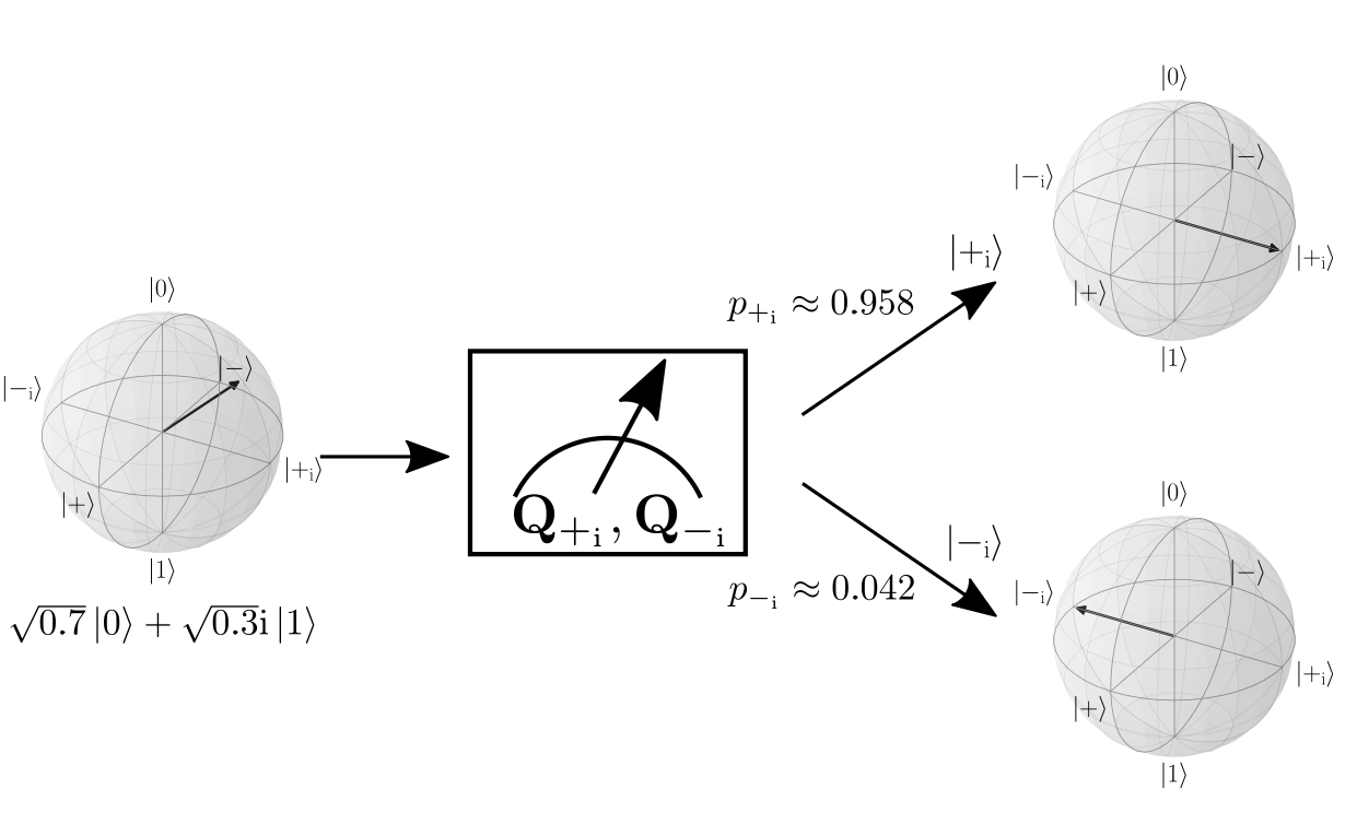 Rozważmy stan \[\ket{\psi} = \frac{\sqrt{3}}{2}\ket{0}+\frac{1}{2}\ket{1}\]