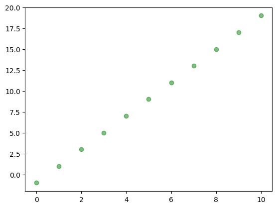 plt.plot(x, y, 'go', label='True data', alpha=0.5)